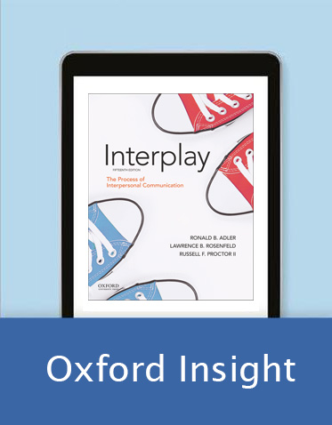 Interplay: The Process of Interpersonal Communication delivers high-quality content from Oxford University Press within powerful, data-driven courseware designed to optimize student success. Developed with a foundation in learning science, Insight enables instructors to deliver a personalized and engaging learning experience that empowers students by actively engaging them with assigned reading. This adaptivity, paired with real-time actionable data about student performance, helps instructors ensure that each student is best supported along their unique learning path.Additional ISBNs9780197501351|9780197540800, 0197501354|0197540805, 9780197501344, 0197501346Oxford Insight: Interplay: The Process of Interpersonal Communication 15th Edition by Ronald B. Adler, Author Lawrence B. Rosenfeld, and Russell F. Proctor II and Publisher Oxford University Press (Courses) – Acrobatiq. ISBN: 9780197540800, 0197540805. The print version of this textbook is ISBN: 9780197540800, 0197540805.